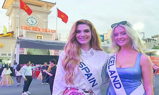 Dàn người đẹp Quốc tế đeo băng đại diện nhiều quốc gia đã có buổi dạo phố và tham quan chợ Bến Thành vào chiều ngày 12/12, đã góp phần quảng bá du lịch TP.HCM.