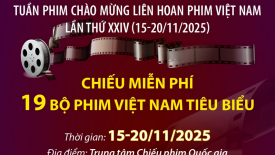 Tuần phim chào mừng Liên hoan Phim Việt Nam lần thứ XXIV, diễn ra từ ngày 15-20/11/2025, là hoạt động văn hóa ý nghĩa nhằm tôn vinh nền điện ảnh Việt Nam, giới thiệu đến công chúng những tác phẩm tiêu biểu phản ánh chiều sâu lịch sử, văn hóa và giá trị nhân văn của dân tộc.