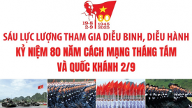 Sẽ có 6 lực lượng tham gia diễu binh diễu hành kỷ niệm 80 năm Cách mạng tháng Tám và Quốc khánh 2/9. Đó là: lực lượng rước đuốc truyền thống và tiêu binh đài lửa; lực lượng pháo lễ; lực lượng không quân bay chào mừng; lực lượng diễu binh, diễu hành; lực lượng đứng làm nền và lực lượng xếp hình, xếp chữ.