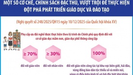 Một số cơ chế, chính sách đặc thù, vượt trội để thực hiện đột phá phát triển giáo dục và đào tạoNghị quyết số 248/2025/QH15 về một số cơ chế, chính sách đặc thù, vượt trội để thực hiện đột phá phát triển giáo dục và đào tạo được Quốc hội thông qua có hiệu lực thi hành từ ngày 1/1/2026. Nghị quyết quy định một số cơ chế, chính sách đặc thù, vượt trội để thực hiện đột phá phát triển giáo dục và đào tạo; áp dụng đối với các cơ sở giáo dục thuộc hệ thống giáo dục quốc dân, các tổ chức và cá nhân có liên quan.