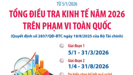 Bắt đầu tổng điều tra kinh tế năm 2026 trên phạm vi toàn quốcTổng điều tra kinh tế năm 2026 do Bộ Tài chính chủ trì triển khai chính thức bắt đầu từ ngày 5/1/2026 phạm vi toàn quốc. -