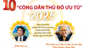 Vinh danh 10 "Công dân Thủ đô ưu tú" năm 2025“Công dân Thủ đô ưu tú” là danh hiệu cao quý của thành phố Hà Nội xét tặng những cá nhân có thành tích đặc biệt xuất sắc, tiêu biểu trên các lĩnh vực của đời sống xã hội. -