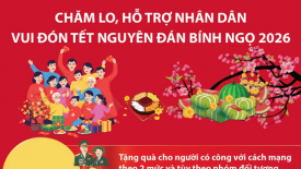 Chăm lo, hỗ trợ Nhân dân vui đón Tết Nguyên đán Bính Ngọ 2026Dịp Tết Nguyên đán Bính Ngọ 2026, nhiều hoạt động thăm hỏi, tặng quà, chăm lo đời sống cho các gia đình chính sách, người có công và đoàn viên, người lao động có hoàn cảnh khó khăn… đã được triển khai trên cả nước. Từ các đoàn công tác của Trung ương đến tổ chức công đoàn các địa phương, tinh thần sẻ chia, trách nhiệm xã hội tiếp tục được lan tỏa, góp phần để mọi người, mọi nhà đón Tết ấm áp, đủ đầy hơn. -
