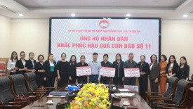 Doanh nhân nữ Thái Bình hỗ trợ người dân Thái Nguyên khắc phục hậu quả bão số 11Hội Doanh nhân nữ Thái Bình, tỉnh Hưng Yên vừa trao tặng 440 triệu đồng và hiện vật hỗ trợ người dân Thái Nguyên khắc phục hậu quả sau bão số 11, lan tỏa thông điệp nhân ái và trách nhiệm xã hội của những nữ doanh nhân thời đại mới.
