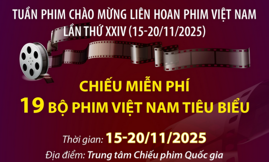 Tuần phim chào mừng Liên hoan Phim Việt Nam lần thứ XXIV, diễn ra từ ngày 15-20/11/2025, là hoạt động văn hóa ý nghĩa nhằm tôn vinh nền điện ảnh Việt Nam, giới thiệu đến công chúng những tác phẩm tiêu biểu phản ánh chiều sâu lịch sử, văn hóa và giá trị nhân văn của dân tộc.