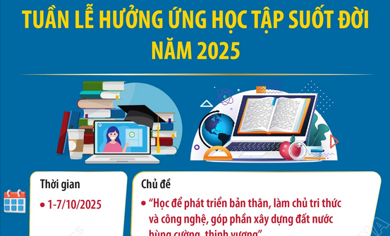 Tuần lễ hưởng ứng học tập suốt đời năm 2025 với chủ đề “Học để phát triển bản thân, làm chủ tri thức và công nghệ, góp phần xây dựng đất nước hùng cường, thịnh vượng” được tổ chức từ ngày 1 - 7/10/2025.