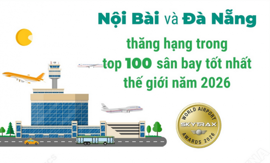 Theo kết quả được Tổ chức quốc tế Skytrax công bố, hệ thống các cảng hàng không trực thuộc Tổng Công ty Cảng hàng không Việt Nam (ACV) đồng loạt ghi nhận những thứ hạng ấn tượng trong danh sách những sân bay tốt nhất toàn cầu năm 2026.