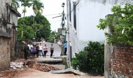 Hà Nội: Cận cảnh ngôi nhà 2 tầng bị sập trên phố Hàng BôngSau cơn mưa lúc rạng sáng nay, bức tường ngoài mặt đường của ngôi nhà 2 tầng trên phố Hàng Bông (phường Hàng Gai, Hoàn Kiếm, Hà Nội) bất ngờ bị đổ sập khiến 1 người bị mắc kẹt bên trong. -