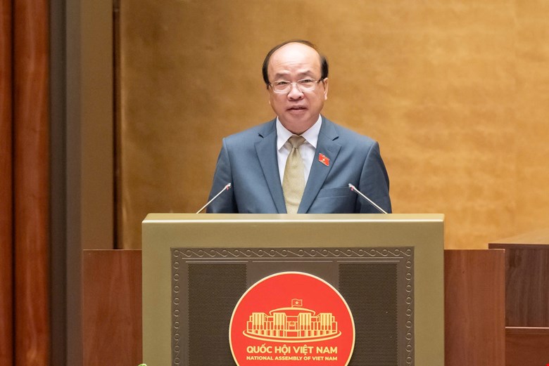| Chủ nhiệm Ủy ban Pháp luật và Tư pháp Phan Chí Hiếu trình bày báo cáo thẩm tra. |