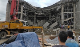 Sập sàn bê tông khi đang thi công trung tâm văn hoá huyện tại Quảng Bình