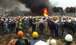 Hiện trường tan hoang sau xô xát ở nhà máy Samsung Thái NguyênNhiều container cùng cả chục xe máy của bảo vệ công trình xây dựng dự án Samsung Thái Nguyên bị đốt cháy. Gạch đá công nhân dùng để tấn công cảnh sát ngổn ngang dưới nền đất. >>> |