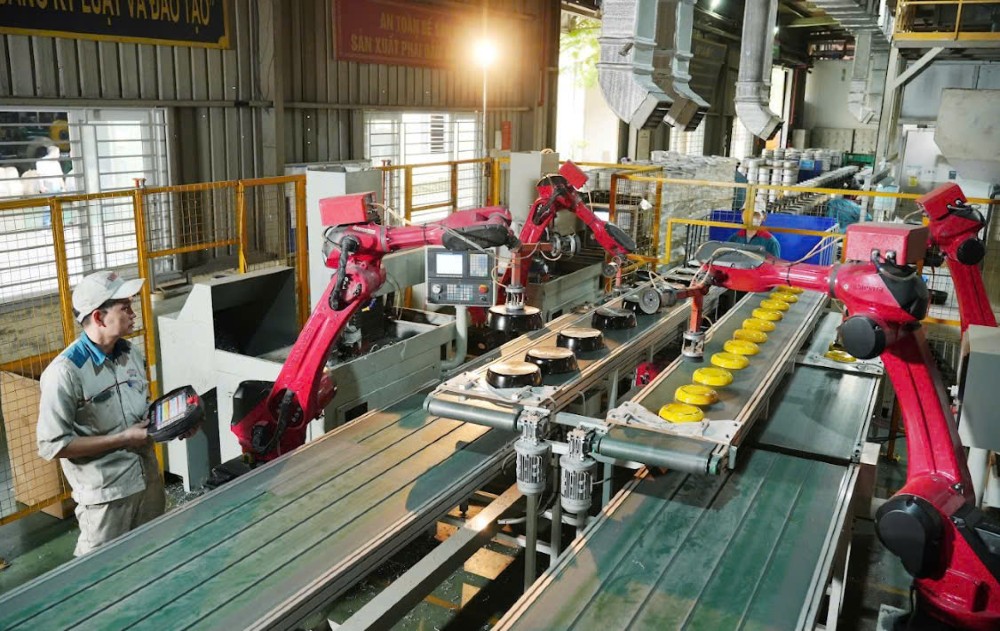 | Hệ thống robot tự động hóa – minh chứng cho bước tiến công nghệ trong các nhà máy Gia dụng SUNHOUSE (Ảnh: Sunhouse) |