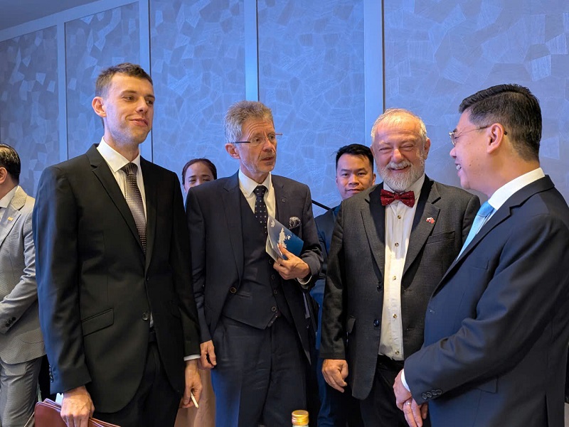 Phó chủ tịch UBND TP.HCM Nguyễn Văn Dũng (ngoài cùng bên phải) trao đổi với Chủ tịch Thượng viện Cộng hòa Czech ông Milos Vystrcil (thứ 2 từ trái qua) bên lề diễn đàn. |