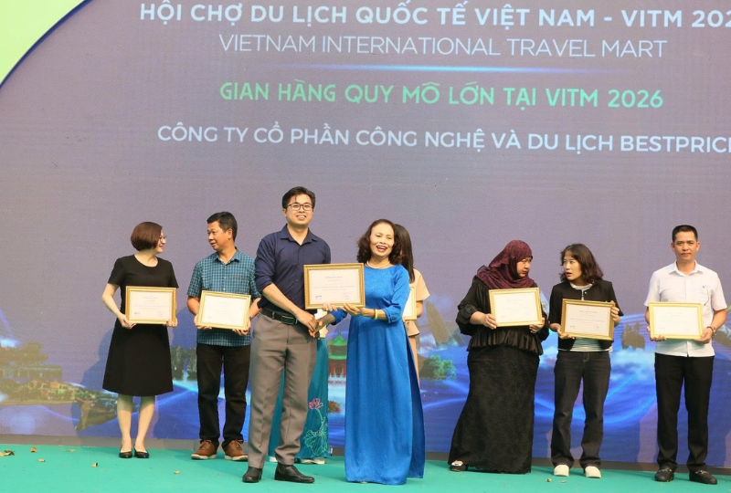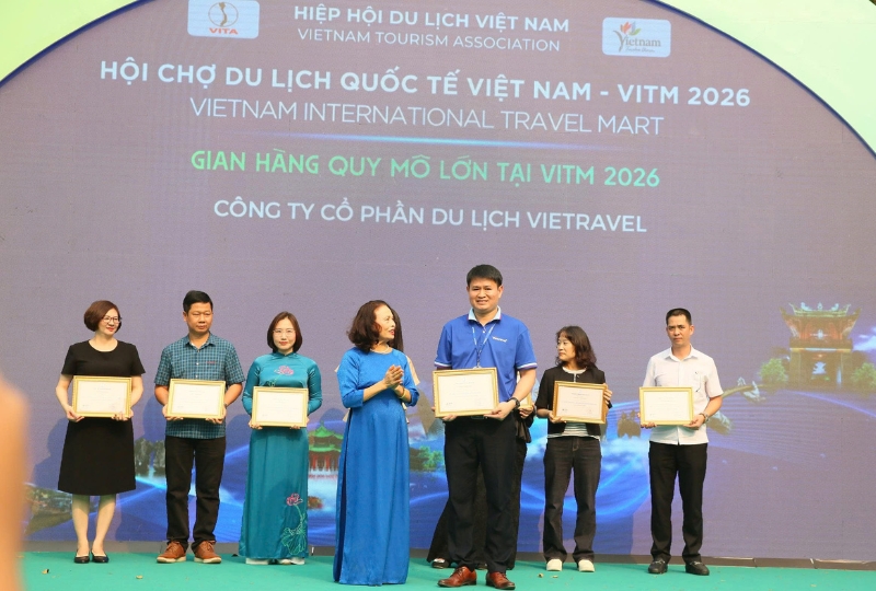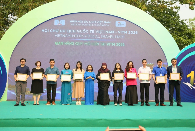 Tại lễ bế mạc VITM 2026, Hiệp hội Du lịch Việt Nam đã vinh danh các tập thể, các nhân có nhiều đóng góp cho thành công của Hội chợ. |