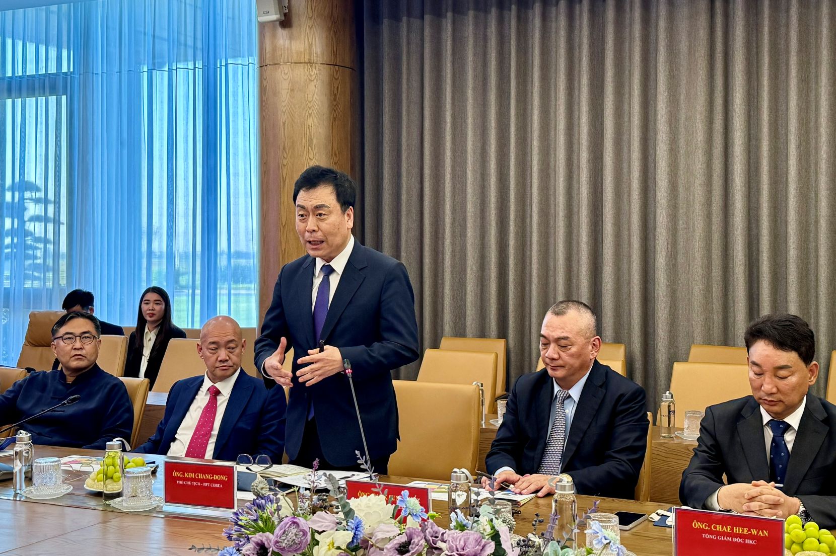 | Đại diện Hiệp hội Doanh nghiệp Toàn cầu Hàn – Trung phát biểu tại buổi làm việc |