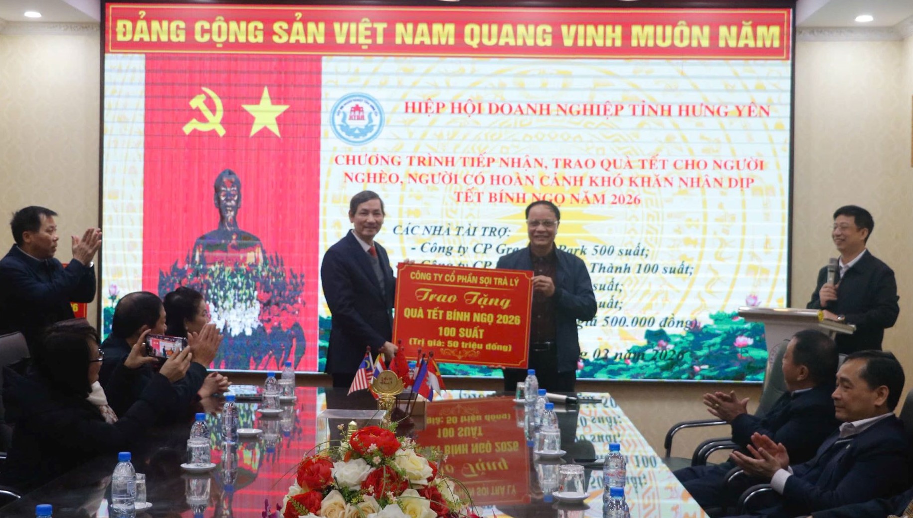 | Hiệp hội Doanh nghiệp tỉnh Hưng Yên tiếp nhận quà Tết từ Công ty cổ phần Sợi Trà Lý |