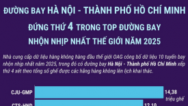 Đường bay Hà Nội - TP. Hồ Chí Minh nằm trong Top 10 đường bay nhộn nhịp nhất thế giới năm 2025Nhà cung cấp dữ liệu hàng không hàng đầu thế giới OAG công bố dữ liệu 10 tuyến bay nhộn nhịp nhất năm 2025, trong đó có đường bay Hà Nội - TP. Hồ Chí Minh xếp thứ 4 xét theo tổng số ghế được các hãng hàng không lên lịch khai thác. -