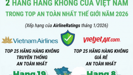 2 hãng hàng không Việt Nam trong danh sách an toàn nhất thế giới năm 2026AirlineRatings đã công bố bảng xếp hạng thường niên Top 25 hãng hàng không an toàn nhất thế giới năm 2026. Việt Nam có 2 hãng hàng không là Vietnam Airlines và Vietjet Air tiếp tục có mặt trong danh sách. -