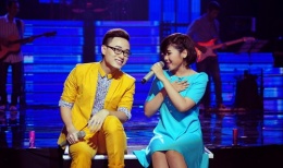Bộ đôi ca sĩ thể hiện những cử chỉ tình tứ khi song ca cùng nhau tại minishow mừng sinh nhật Hà Anh Tuấn tối 17/12 ở Hà Nội.