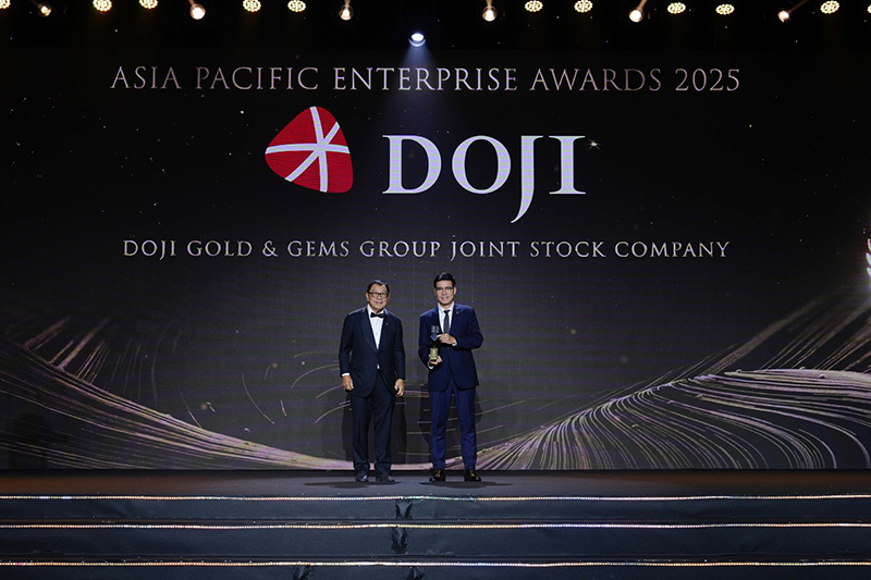 Mới đây, ngày 9/10/2025, tại Lễ trao giải Asia Pacific Enterprise Awards (APEA) - Tập đoàn DOJI một lần nữa được xướng tên trong hạng mục “Doanh nghiệp xuất sắc Châu Á - Corporate Excellence Award”. Là giải thưởng danh giá do Hiệp hội Doanh nghiệp Châu Á (Enterprise Asia) tổ chức, APEA năm nay mang chủ đề “Showcasing Future - Ready Enterprises” (Tôn vinh doanh nghiệp đón đầu tương lai), tôn vinh những doanh nghiệp và doanh nhân tiên phong trong đổi mới, chủ động thích ứng, giảm thiểu rủi ro và kiến tạo mô hình phát triển bền vững trong kỷ nguyên chuyển đổi số và kinh tế xanh.