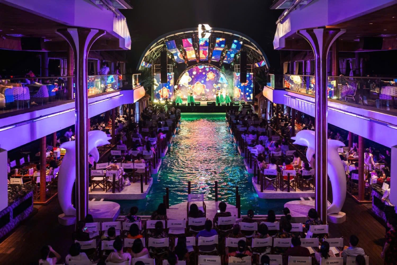 Điểm nhấn ấn tượng nhất là bể bơi nước mặn bốn mùa gần 300 m² lớn nhất Việt Nam trên du thuyền, đi kèm bể sục Jacuzzi thủy lực, 16 bungalow riêng tư, nhà hàng 700 m², bar sang trọng, phòng họp quốc tế, và sân khấu mái vòm nổi hơn 180 m² với hệ thống âm thanh, ánh sáng hiện đại. Tất cả tạo nên một không gian giải trí đa tầng, nơi cảm xúc, âm nhạc, ẩm thực và cảnh sắc thiên nhiên hòa quyện thành một bản giao hưởng sống động.