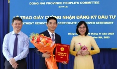 | Lãnh đạo UBND tỉnh Đồng Nai trao giấy chứng nhận đăng ký đầu tư cho doanh nghiệp FDI - Ảnh: L.Q |