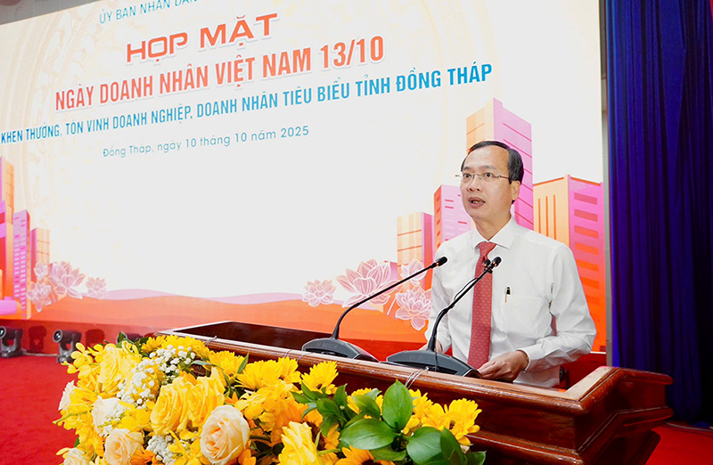 Phát biểu khai mạc, Chủ tịch UBND tỉnh Đồng Tháp Trần Trí Quang nhấn mạnh, kỷ niệm 21 năm Ngày Doanh nhân Việt Nam năm nay là dấu mốc đặc biệt, diễn ra trong bối cảnh cả nước đang đẩy mạnh cải cách tổ chức bộ máy theo hướng tinh gọn, hiệu lực, càng có ý nghĩa hơn khi Đồng Tháp vừa tổ chức thành công Đại hội Đảng bộ tỉnh lần thứ I, nhiệm kỳ 2025-2030, mở ra định hướng phát triển chiến lược, tạo nền tảng phát triển vững chắc trong thời gian tới.
