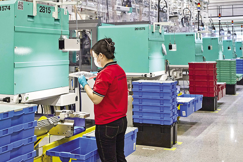 | Công nhân sản xuất mô hình đồ chơi trẻ em tại Nhà máy trung hòa carbon của Tập đoàn Lego ở TP.HCM. Ảnh: Lê Minh |