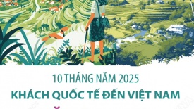 Khách quốc tế đến Việt Nam tăng 21,5% sau 10 tháng năm 202510 tháng năm 2025, khách quốc tế đến Việt Nam đạt gần 17,2 triệu lượt người, tăng 21,5% so với cùng kỳ năm trước. -