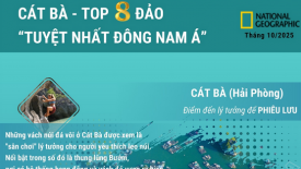 Cát Bà lọt Top 8 đảo tuyệt nhất Đông Nam ÁNational Geographic đưa Cát Bà vào danh sách “8 hòn đảo tuyệt nhất Đông Nam Á” và ưu ái gọi đây là “sân chơi” lý tưởng cho những tâm hồn đam mê phiêu lưu mạo hiểm. -