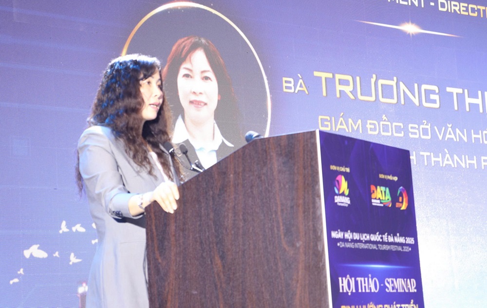 Bà Trương Thị Hồng Hạnh, Giám đốc Sở Văn hóa, Thể Thao và Du lịch Đà Nẵng phát biểu tại Hội thảo. |