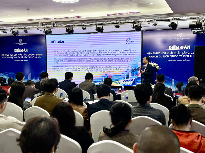 Phát biểu khai mạc Diễn đàn “Hiện thực hóa giải pháp tăng cường thu hút khách du lịch quốc tế đến Thủ đô Hà Nội”, do Sở Du lịch Hà Nội tổ chức sáng 17/12, ông Trần Trung Hiếu, Phó giám đốc Sở Du lịch Hà Nội khẳng định, năm 2025 là một năm ghi nhận nhiều dấu ấn quan trọng của ngành Du lịch Thủ đô.