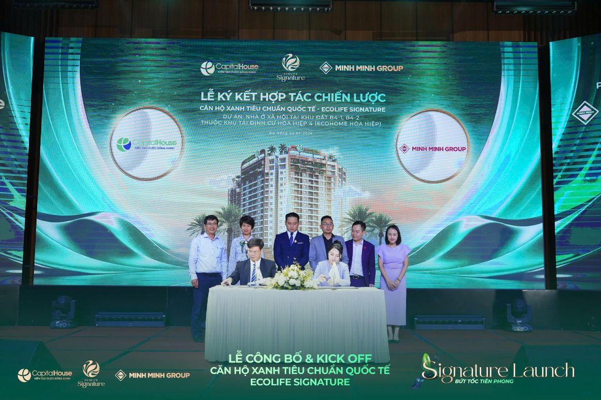 Sáng ngày 02/04/2026, tại Muong Thanh Luxury Da Nang Hotel đã diễn ra Lễ công bố & Kick Off căn hộ xanh tiêu chuẩn quốc tế Ecolife Signature Đà Nẵng, dự án nhà ở xã hội tại Khu đất B4-1, B4-2 thuộc Khu tái định cư Hòa Hiệp 4 (Ecohome Hòa Hiệp). Sự kiện có sự tham gia của chủ đầu tư Capital House, đơn vị phát triển kinh doanh Minh Minh Group cùng lãnh đạo và đội ngũ chuyên viên kinh doanh của 16 đại lý và liên minh phân phối.