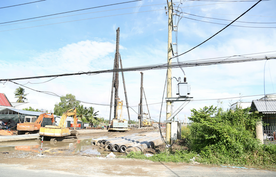 Dự án Đường Hồ Chí Minh đoạn Rạch Sỏi - Bến Nhất, Gò Quao - Vĩnh Thuận có đoạn đang vướng đường điện trung thế. |