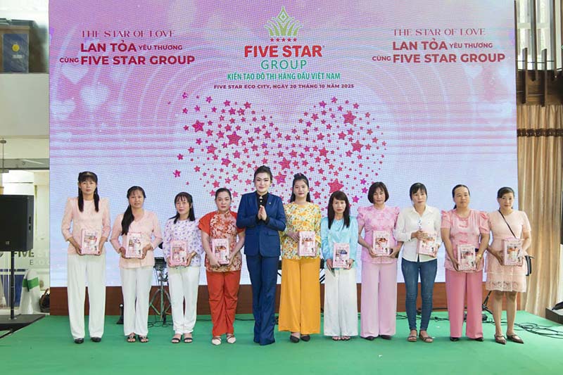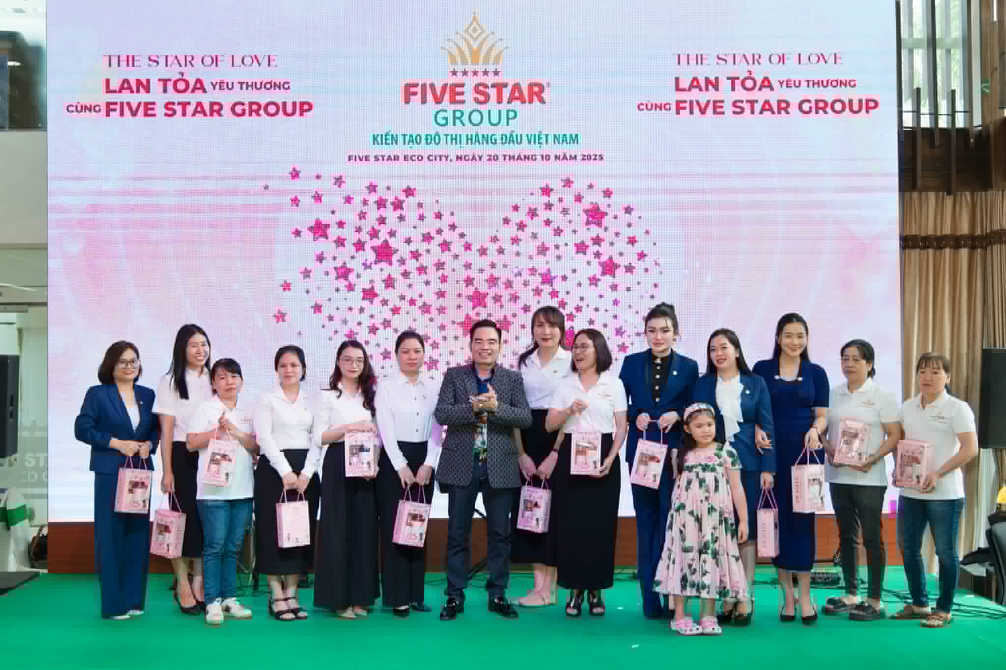 Cụ thể, trong chương trình kỷ niệm ngày Phụ nữ Việt Nam 20/10, Five Star Group tổ chức lễ tôn vinh những nhân viên nữ đang làm việc tại doanh nghiệp. Đồng thời, tổ chức sự kiện mang chủ đề “Lan tỏa yêu thương cùng Five Star Group”, chương trình kêu gọi mỗi cán bộ, nhân viên của Tập đoàn đóng góp 1 triệu đồng.