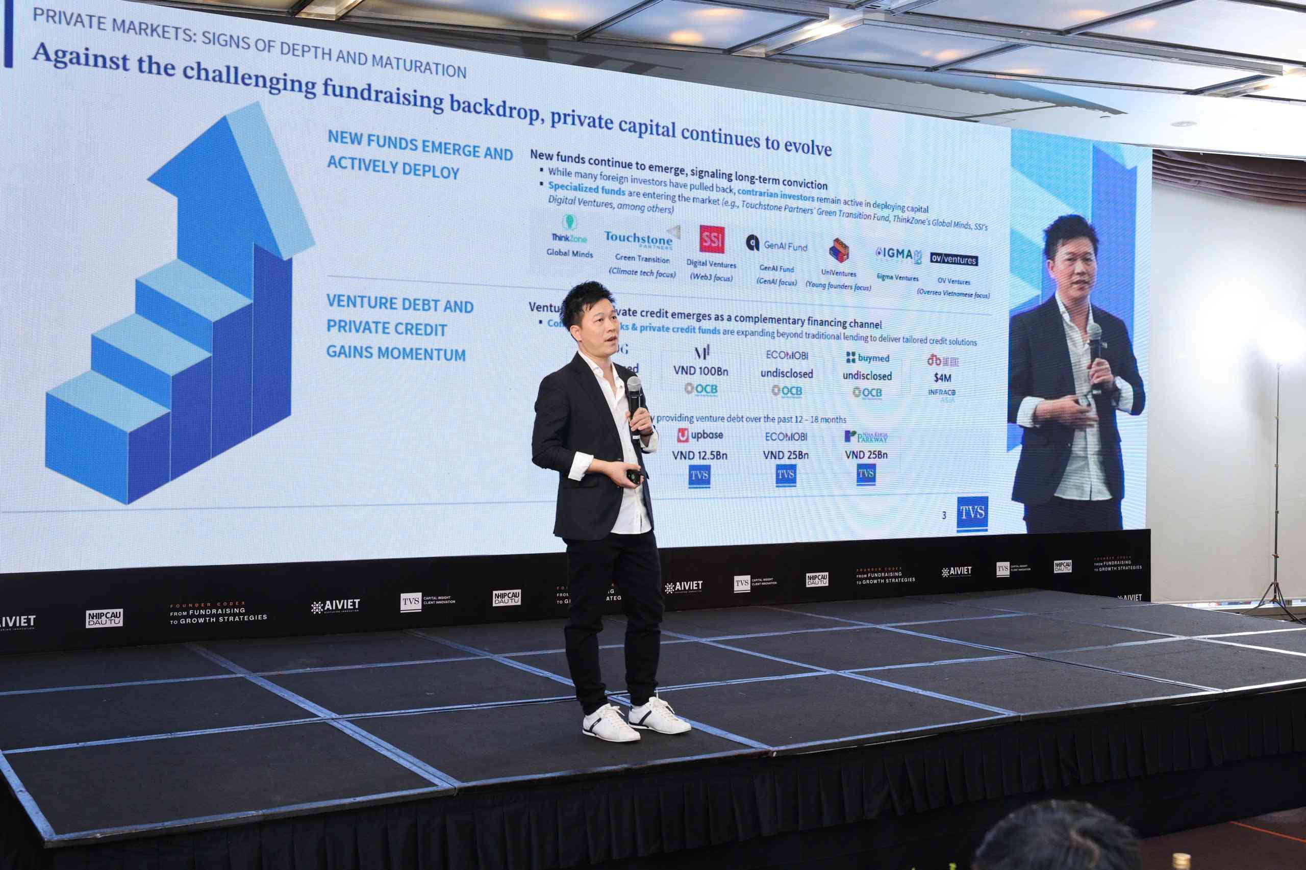 Ông Chung cũng chỉ ra 3 làn sóng đánh dấu sự trưởng thành và phát triển của thị trường vốn tư nhân. Một là sự hình thành của các quỹ đầu tư mới và các quỹ đầu tư chuyên biệt trong bối cảnh nhiều quỹ ngoại rút lui khỏi thị trường. Điều này cho thấy các nhà đầu tư có tầm nhìn dài hạn vẫn tin tưởng vào thị trường Việt Nam. Hai là sự xuất hiện của dòng vốn tín dụng tư nhân (private credit và venture debt) như là một đòn bẩy đắc lực cho doanh nghiệp bên cạnh dòng vốn đầu tư cổ phần tư nhân truyền thống (private equity và venture capital). Ba là danh mục các công ty chuẩn bị chào bán cổ phiếu lần đầu ra công chúng (IPO) có tín hiệu nóng trở lại, hứa hẹn khả năng thoái vốn cho các nhà đầu tư đang dần được phục hồi.