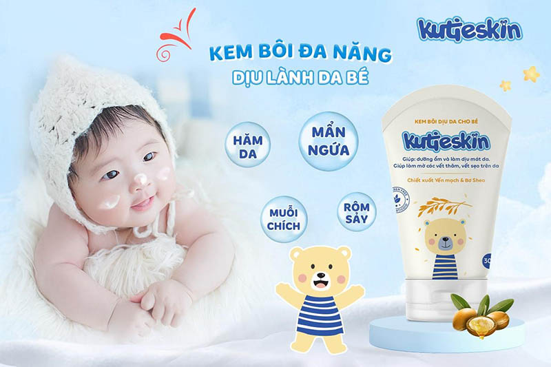 Làn da em bé mỏng manh và nhạy cảm, những năm tháng đầu đời không thể tránh khỏi việc bị hăm, mẩn ngứa, rôm sảy, muỗi đốt hay những vết trầy xước nhỏ. Tất cả những tình trạng da phổ biến trên đều có thể sử dụng kem bôi dịu da Kutieskin. Bởi vậy, tên gọi “kem đa năng” đã gắn liền với sản phẩm này từ lâu và đây là sản phẩm nên có trong tủ thuốc gia đình.