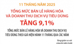 Tổng mức bán lẻ hàng hóa và doanh thu dịch vụ tiêu dùng tăng 9,1% sau 11 tháng năm 2025 -