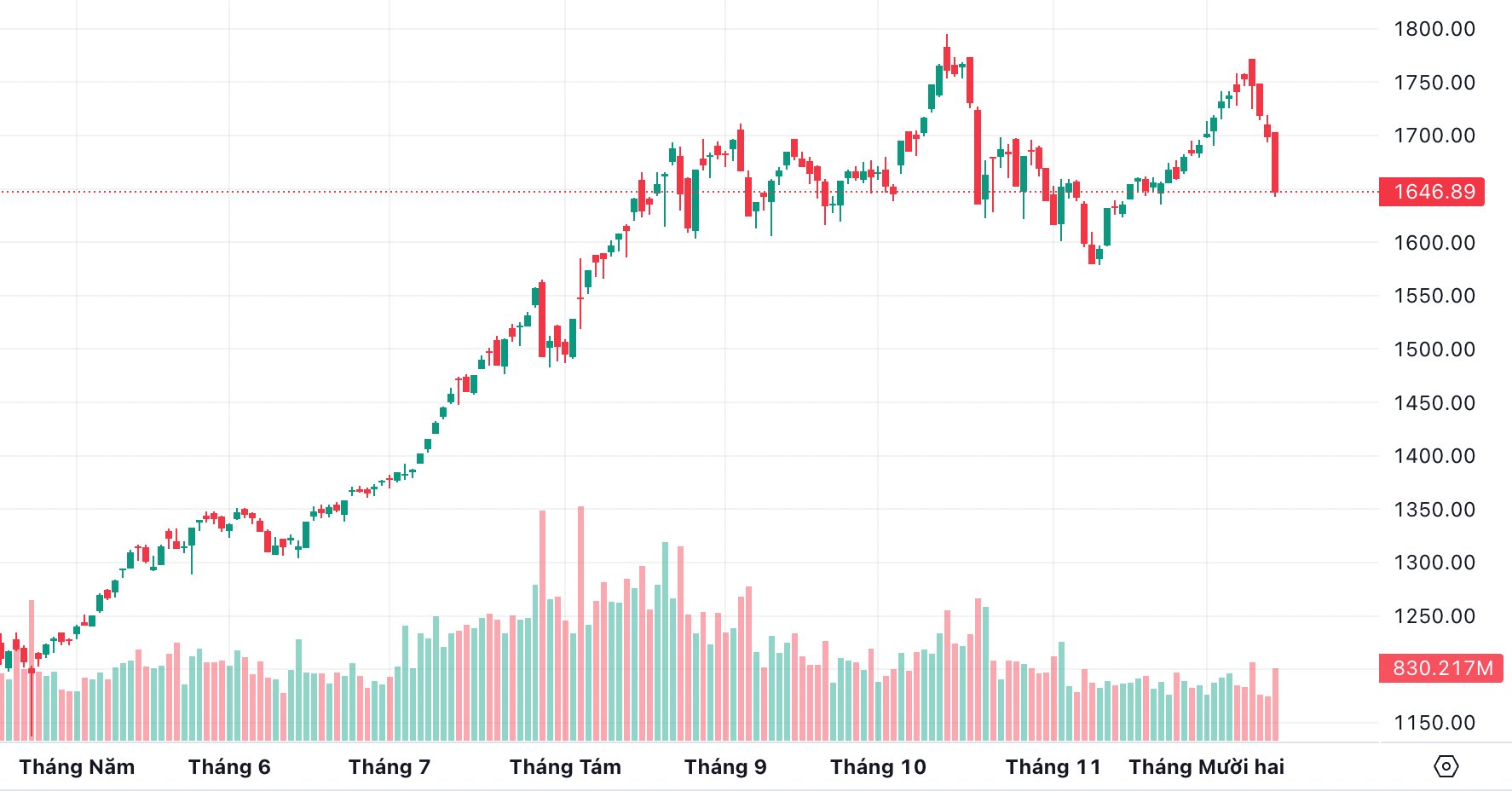 Chứng khoán phiên 12/12: Giảm giá đồng loạt, VN-Index lùi về 1.646 điểm -