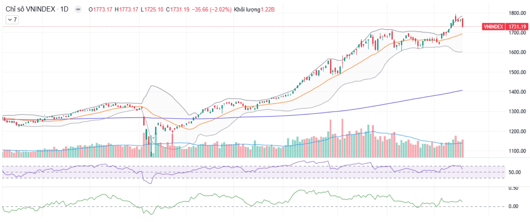 VN-Index kết tuần giảm -0,94% về mức 1.731,19 điểm. |