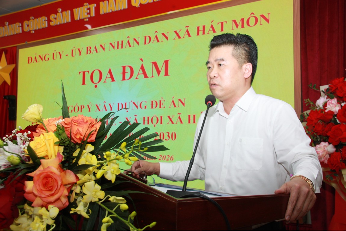 Tại buổi tọa đàm, Bí thư Đảng ủy, Chủ tịch HĐND xã Hát Môn Nguyễn Đình Sơn cho hay, việc xây dựng Đề án phát triển kinh tế - xã hội giai đoạn 2026-2030 có ý nghĩa quan trọng, tạo nền tảng cho địa phương phát triển nhanh, bền vững trong tương lai dài hạn.