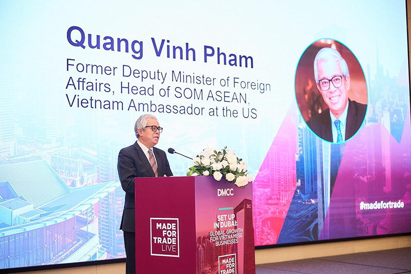 Về phía Việt Nam, ông Phạm Quang Vinh, nguyên Thứ trưởng Bộ Ngoại giao, nguyên Trưởng SOM ASEAN, nguyên Đại sứ Việt Nam tại Hoa Kỳ, đánh giá cao tiềm năng hợp tác và phát triển ngoại thương giữa Việt Nam và Dubai trong bối cảnh kinh tế toàn cầu đang phục hồi và mở rộng kết nối khu vực.