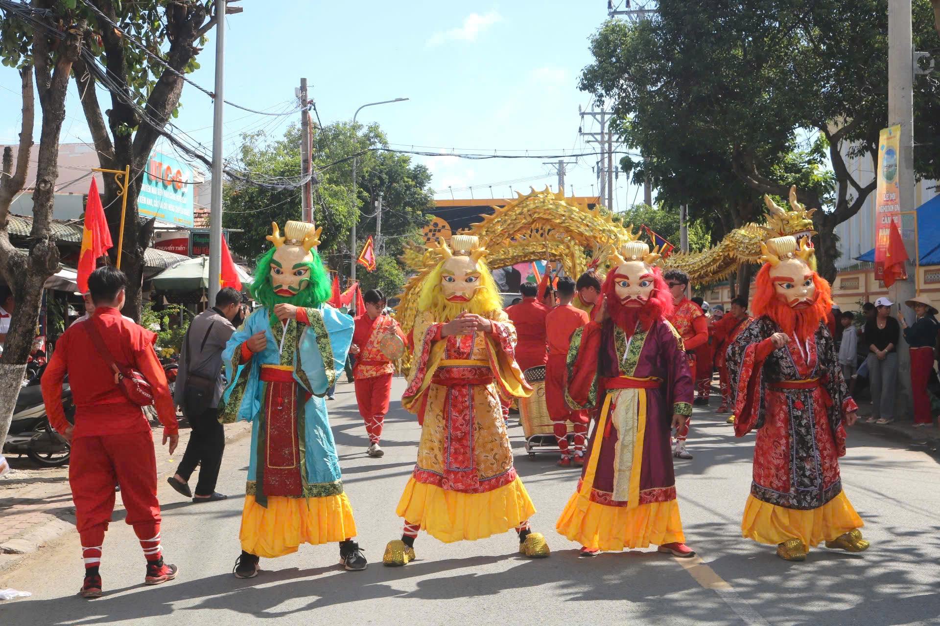 Các tiết mục lân sư rồng, đua cà kheo cùng nhiều trò chơi dân gian làm không khí tại lăng Ông Thủy Tướng trở nên sôi động hơn. |