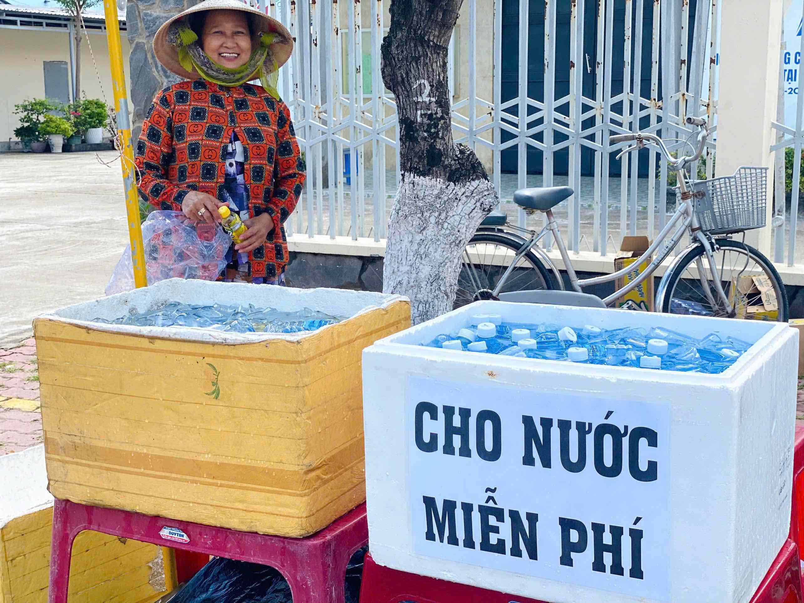 Tươi cười phát các chai nước suối mát lạnh cho người đi trên đường, bà Nguyễn Thị Ngọc Thu (58 tuổi, ngụ đường Đào Cử, xã Cần Giờ) cho biết, năm nào đến dịp lễ, bà cũng chuẩn bị hai thùng nước đá và hàng trăm chai nước suối để phát miễn phí cho người dân và du khách. “Tôi thấy bà con đi lễ dưới trời nắng nóng, mồ hôi nhễ nhại nên chỉ nghĩ đơn giản là giúp được chút nào hay chút đó. Nhìn mọi người nhận chai nước và cười vui là tôi thấy đủ ấm lòng”, bà Thu chia sẻ. |