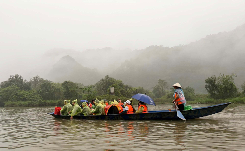 Theo ghi nhận của phóng viên, nhiều thuyền đã xuất bến từ 3 giờ sáng. Càng về sáng, lượng khách càng đông. Hàng nghìn người tay cầm hương hoa, lễ vật, kiên nhẫn xếp hàng xuống đò để bắt đầu hành trình vào miền đất Phật. Mưa có lúc nặng hạt, nhưng áo mưa đủ sắc màu càng làm dòng người thêm rực rỡ giữa không gian núi non trùng điệp.