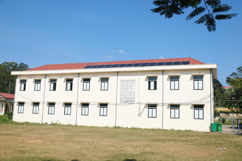 Cùng với đó, ông Vang cho biết, hệ thống điện mặt trời công suất 8,68 kW đang phát huy hiệu quả rõ rệt. Vào những tháng nắng mạnh, công suất đạt khoảng 40% lượng điện tiêu thụ, giúp nhà trường duy trì chiếu sáng và thông gió ổn định, đặc biệt trong các tình huống mất điện do thời tiết cực đoan. Đến mùa đông và mùa mưa, mức sinh điện giảm xuống hơn 10%, nhưng vẫn đủ để giảm đáng kể chi phí vận hành và hỗ trợ những hoạt động thiết yếu trong khuôn viên trường. Từ thực tế này, thầy bày tỏ mong muốn nhà trường tiếp tục được dự án hỗ trợ đầu tư thêm các tấm pin năng lượng mặt trời trong giai đoạn tới nhằm tăng khả năng chống chịu và đảm bảo môi trường học tập an toàn cho học sinh vùng cao.