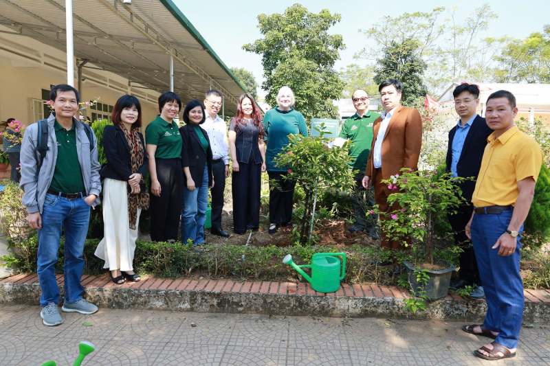 | Nhân chuyến thăm và làm việc, Đại sứ quán Ireland đã tặng 3 cây xanh cho Trường Tiểu học và THCS Yên Hòa. Ảnh: Kiều Trang. |