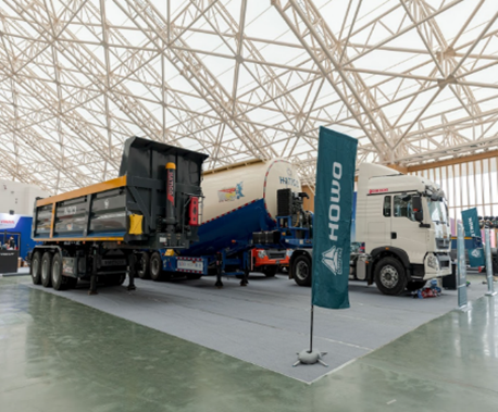 | Ngành vận tải cũng không kém cạnh với dàn xe đầu kéo Howo và rơ-moóc chuyên dụng của Hatico |