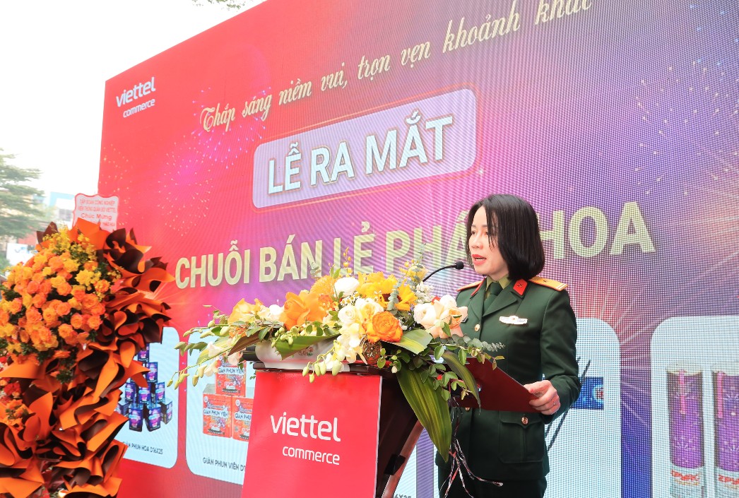 | Thiếu tá Đinh Thị Dung, Giám đốc hệ thống bán lẻ Viettel phát biểu tại buổi lễ |
