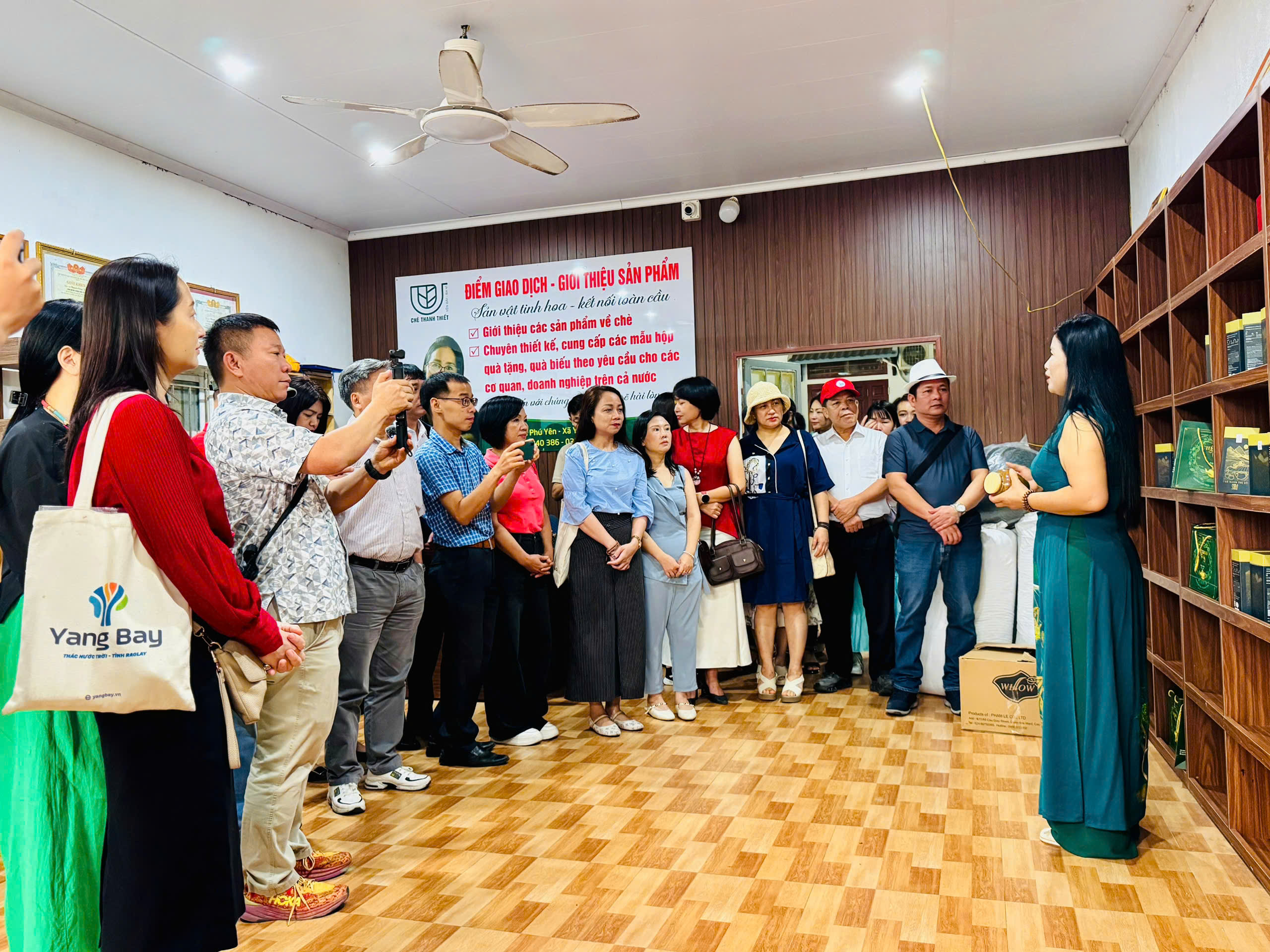 | Các đại biểu tham quan, khảo sát mô hình sản xuất chè OCOP Thanh Thiết, xã Yên Bài. Ảnh: Hồ Hạ. |